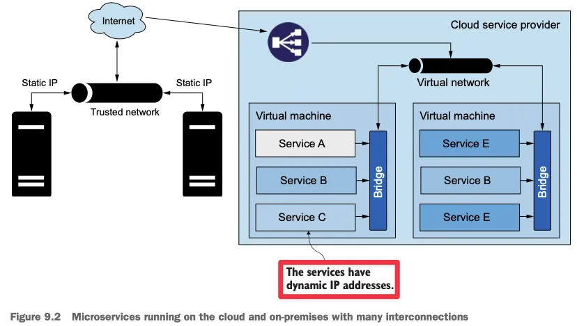 - 모놀리식 아키텍처와 달리 마이크로서비스 환경에서는 IP 기반의 신뢰가 어려움